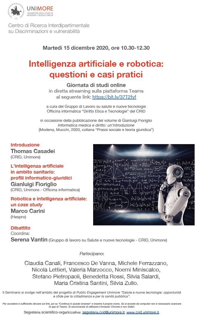 Intelligenza artificiale e robotica: questioni e casi pratici (15/12/2020)
