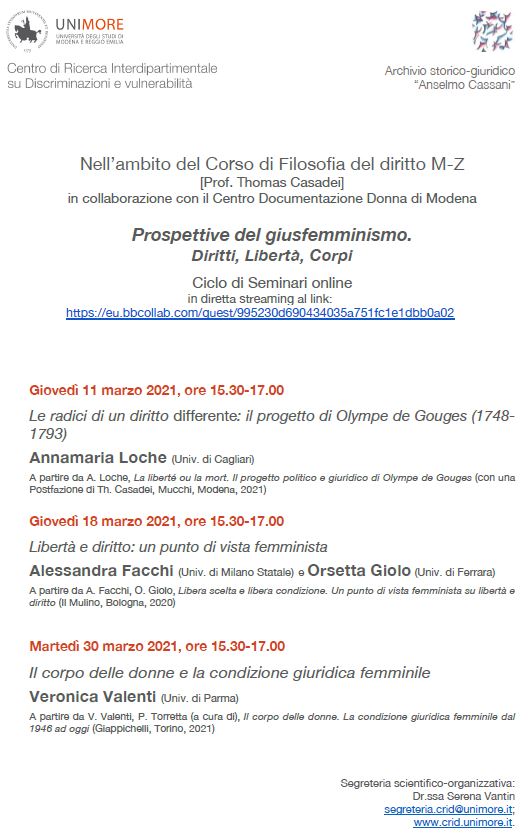Ciclo Prospettive del giusfemminismo. Diritti, Libertą, Corpi
