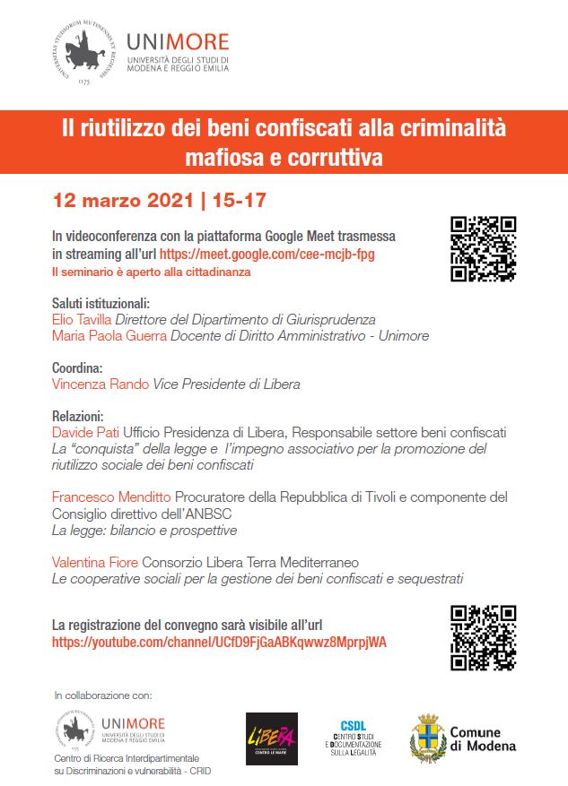 12/03/2021 - Il riutilizzo dei beni confiscati alla criminalità mafiosa e corruttiva