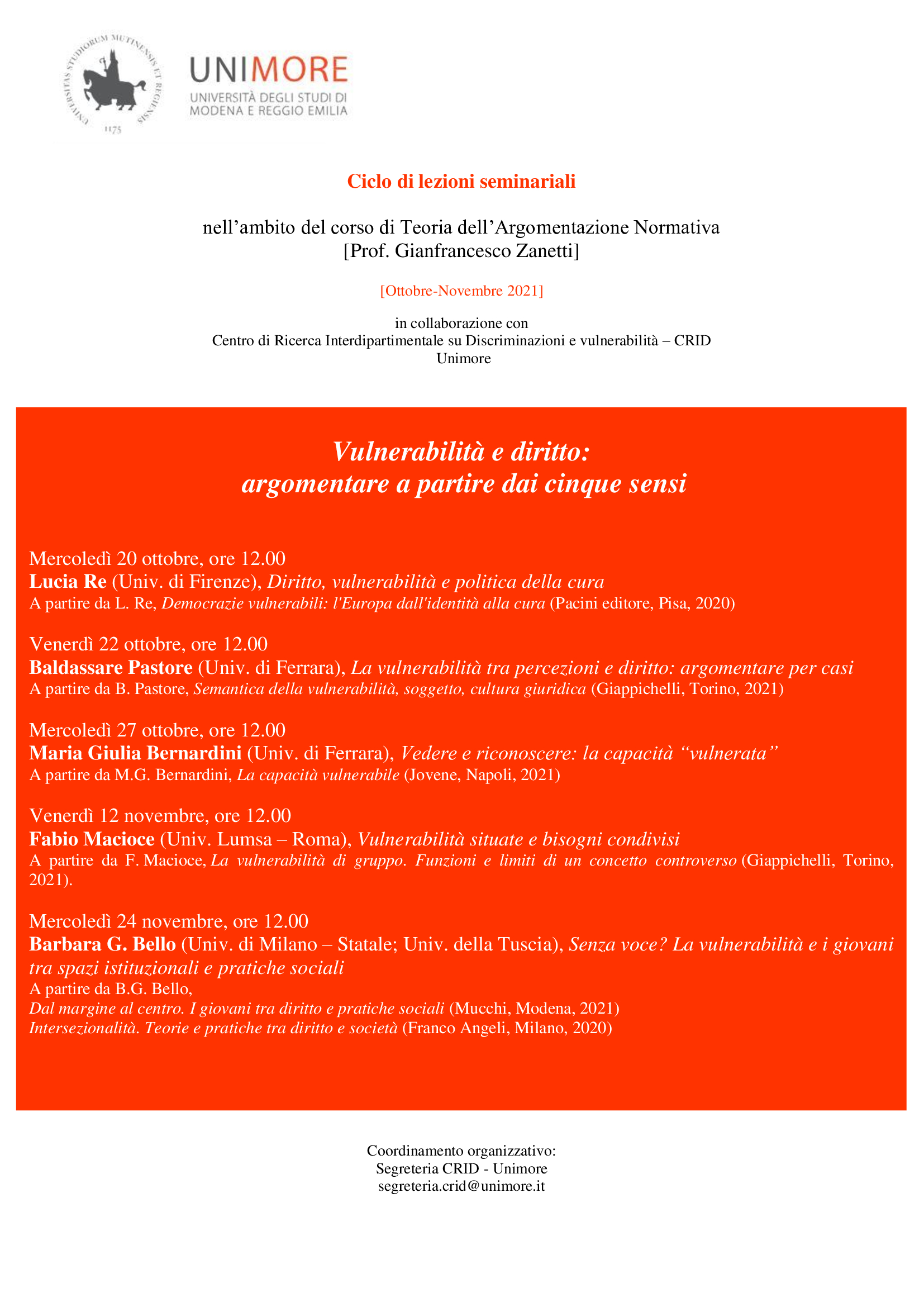 Ciclo di lezioni seminariali - corso di Teoria dell'Argomentazione Normativa