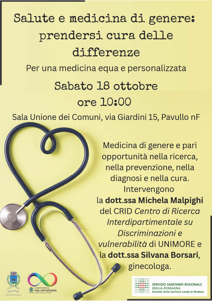 Il 18 ottobre 2025, alle ore 10.00 a Pavullo (MO) si terrą l'incontro dal titolo "Salute e medicina di genere: prendersi cura delle differenze".