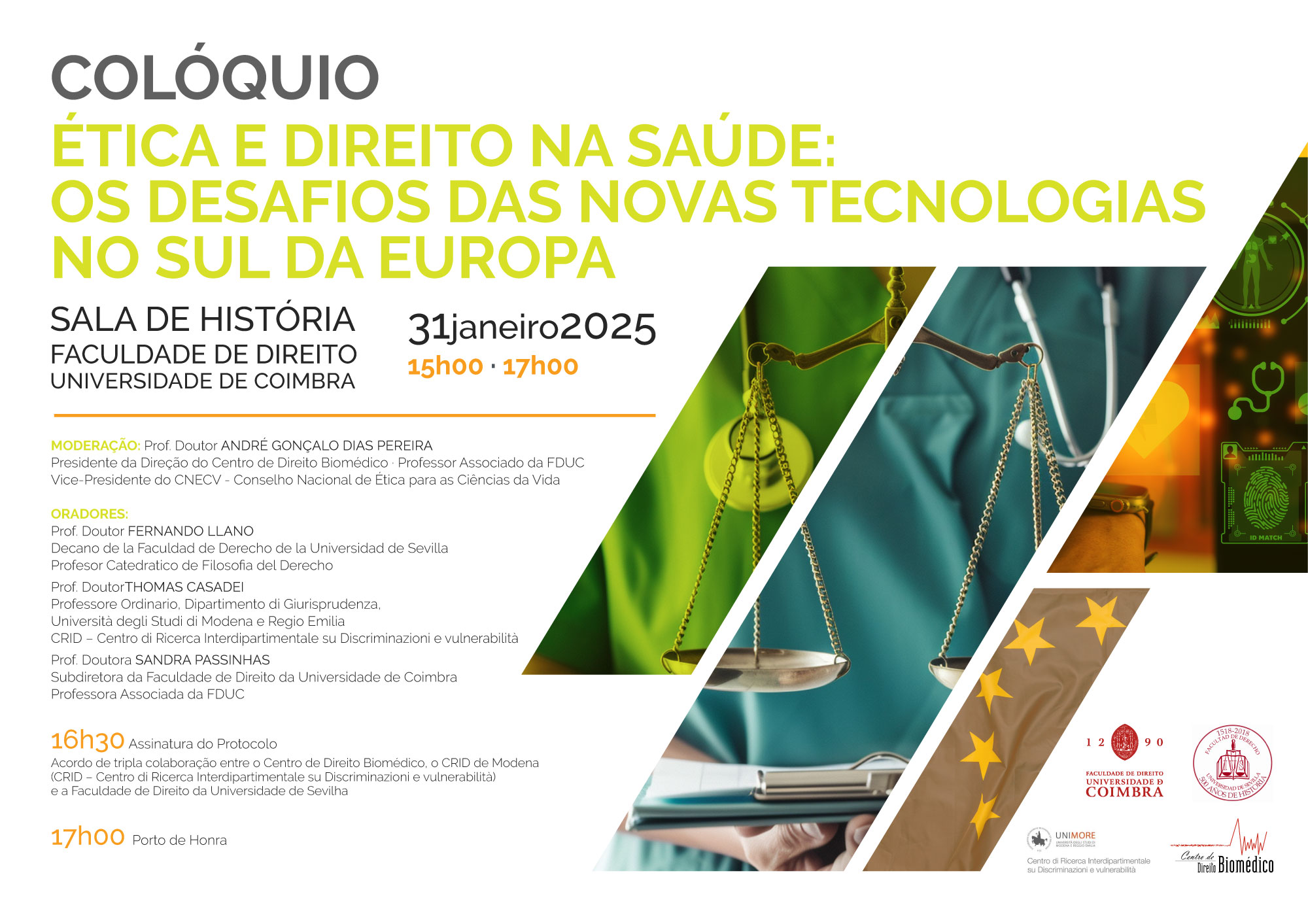 Ética e direito na saúde: os desafios das novas tecnologias no sul da Europa, 31 gennaio 2025 - Locandina